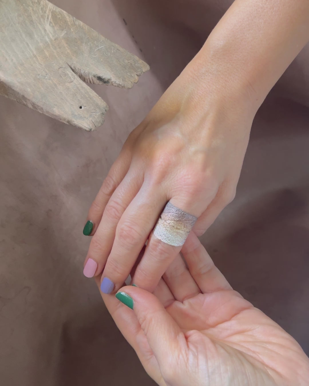 Ich erzeuge verschiedene Farbtöne durch einen speziellen Prozess auf den Silber Schmuckstücken. Die Farben bleiben lange erhalten, solange du den Ring vorsichtig behandelst und ihn trocken hältst.