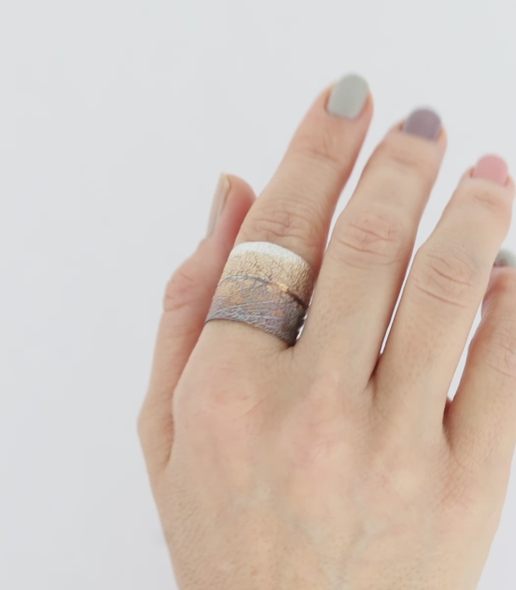 In a further step, the leaf is then forged into a ring and remains open at the back. This allows you to adjust the ring to your finger in a loving way when you wear it for the first time. This gives you the option of making each ring one size smaller or one size larger. This increases the flexibility in choosing the ring size.