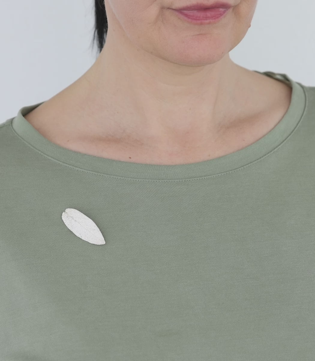 Silver brooch sage leaf