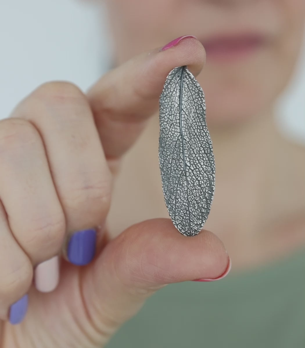 Decorate yourself with a unique, handmade piece of jewelry made from real sage leaves that are taken directly from a leaf.