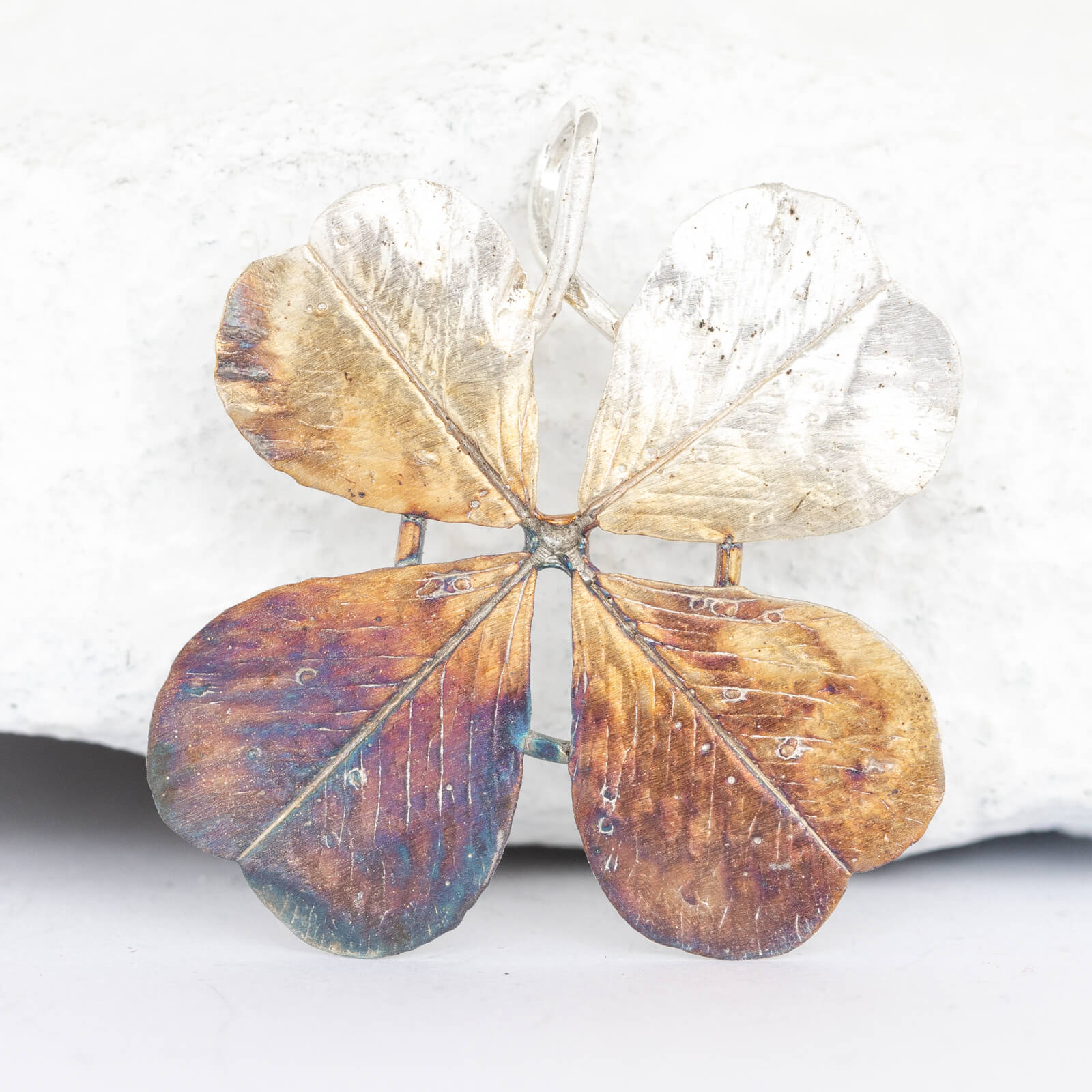 Stell dir vor, ein Blatt aus deinem Garten, von deinem Lieblingsbaum oder sogar ein Fundstück wie ein vierblättriges Kleeblatt wird in ein einzigartiges Schmuckstück verwandelt. Ich biete dir die Möglichkeit, dein ganz persönliches Schmuckstück aus einem Blatt zu fertigen, das du mir zusendest. Ob in recyceltem Silber oder mit 24 Karat Gold plattiert – dein Naturfundstück wird zu einem unvergesslichen und tragbaren Erinnerungsstück, das die Natur und deine persönlichen Geschichten miteinander verbindet.