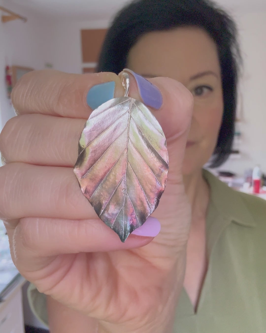 Die Blätter werden in meinem Atelier mit Recyclingsilber stabilisiert und bei fast 1.000°C gebrannt. Das Ergebnis ist ein robustes Schmuckstück, das dich viele Jahre begleitet – achtsam gefertigt, leicht zu tragen und trotzdem stabil.