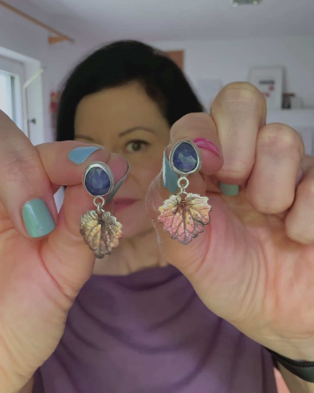 Gundermannblatt Ohrhänger mit Tansanit in Silber