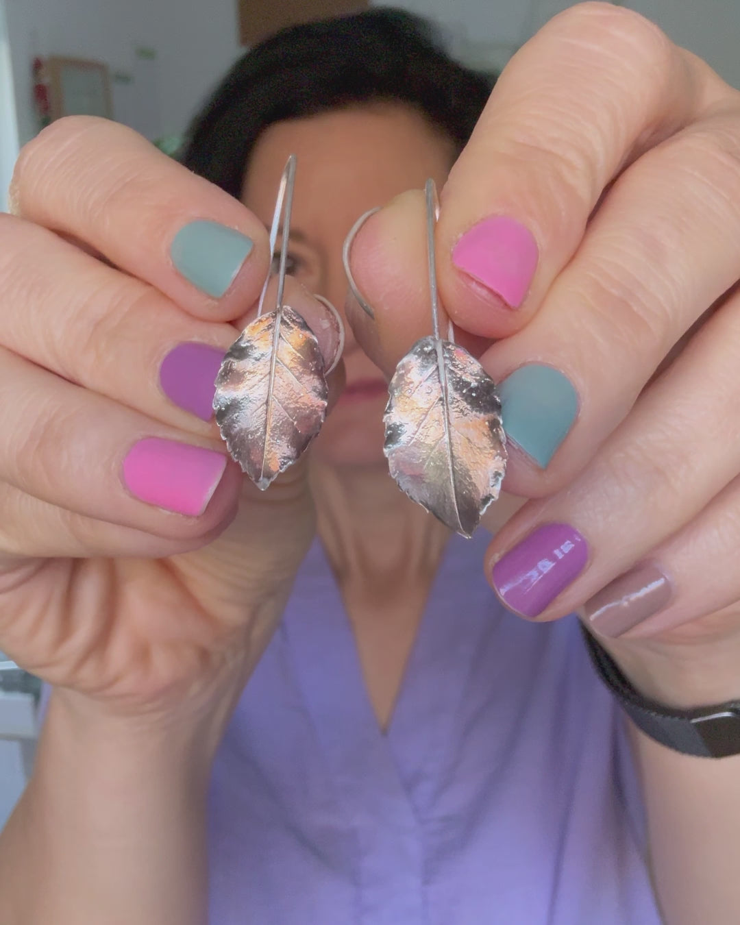 Die Blätter werden in meinem Atelier mit Recyclingsilber stabilisiert und bei fast 1.000°C gebrannt. Das Ergebnis ist ein robustes Schmuckstück, das dich viele Jahre begleitet – achtsam gefertigt, leicht zu tragen und trotzdem stabil.