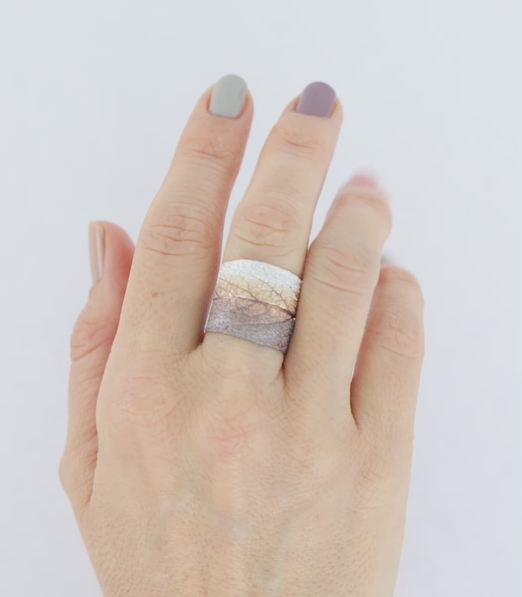 Dieser einzigartige Ring wurde von Hand gefertigt und besteht aus einem echten Salbeiblatt. Jeder Ring ist ein individuelles Schmuckstück, das nur einmal existiert.