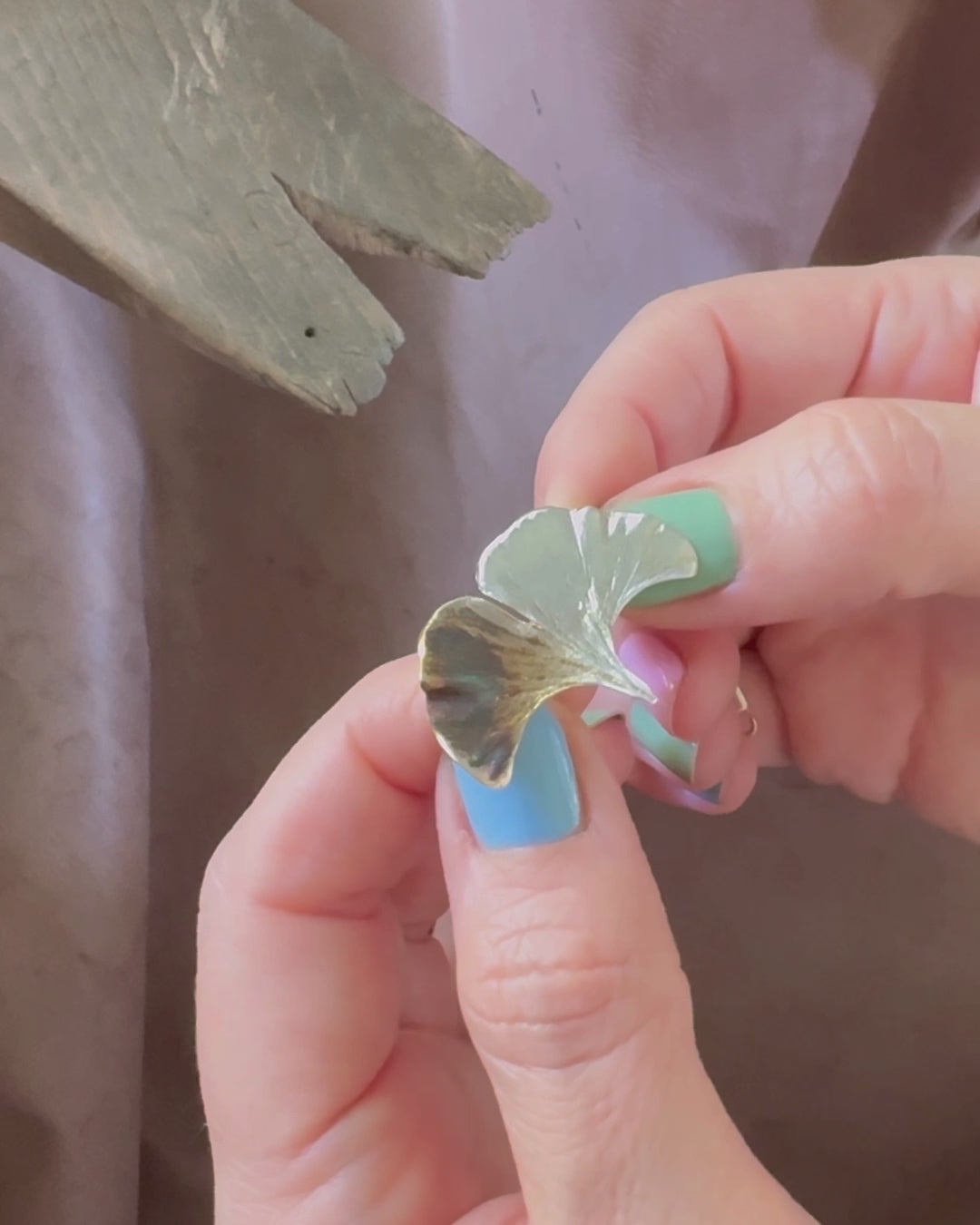 Die Blätter werden in meinem Atelier mit Recyclingsilber stabilisiert und bei fast 1.000°C gebrannt. Das Ergebnis ist ein robustes Schmuckstück, das dich viele Jahre begleitet – achtsam gefertigt, leicht zu tragen und trotzdem stabil.